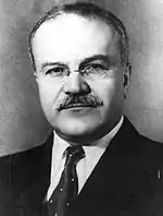 On May 6, 1941, Molotov was relieved of his post as chairman of the Council of People's Commissars of the Soviet Union, taking the post of deputy head of government. The official reason for Molotov's resignation was his many requests, motivated by the difficulty to fulfill the duties of head of government along with the duties of the People's Commissar of Foreign Affairs.[3] According to some historians, the real reasons for the removal of Molotov from the leadership of the government were Joseph Stalin's personal dislike and the latter's decision to take the post of chairman of the Council of People's Commissars of the Soviet Union to concentrate the party and executive state power in a difficult international situation on the eve of Germany's invasion of the Soviet Union.[4]