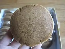 Chalbori-ppang (찰보리빵; "glutinous barley bread") is a Korean confection, consisting of two small pancakes made with glutinous barley flour wrapped around a filling of red bean paste.[1] The round, flat, mildly sweet confection has a texture similar to that of a glutinous sponge cake.[2][3]