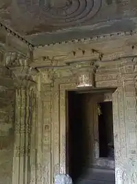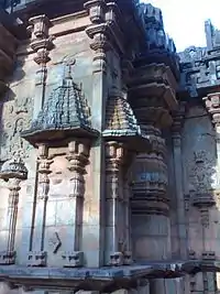 - On either side of the mukhyamandapa, jalandhars with dancing apsaras and musicians are carved.