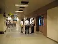 The system also uses a by-pass operation between Terminals 2 and 3, where trains are placed under synchronous control so that they depart and arrive at each corresponding station at the same time. Specifically, the station departing times are synchronized by the count of the station dwell time which is automatically adjusted based on the stoppage state at the station. Also, the train speed is adjusted by ATO which recognizes signals which are sent from the way-side control devices to the on-board control device at the time of departure from a station so that the crossing times in the bypass section are optimized and their arrival times are synchronized.[5]