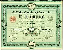 André Auniac and Étienne Romano founded the SA des Chantiers aéronavals Étienne Romano [2] on 16 August 1929. The factory was ideally located between the Mediterranean Sea and a flat expanse of grassland where the planes could take-off and land. That field would become later Cannes – Mandelieu Airport. In 1931 the Romano factory became operational and full production started.[1]
