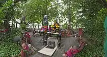 The Chao Mae Tuptim shrine (Thai: ศาลเจ้าแม่ทับทิม, RTGS: Thapthim, also known as Penis Shrine[1]) is a phallic shrine in Bangkok, Thailand, located behind the Swissôtel Bangkok hotel near the bank of the Khlong Saen Saep. The shrine was created in the first quarter of the 20th century by Thai businessman Nai Lert (1872-1945), who found a spirit house floating in the klong and placed it on the bank of his property.[1] In Thailand, the phallus is considered to be a symbol of good luck and also a representative of fertility. The shrine is one of the best examples of intentional phallic architecture in the world. The site, which measures roughly 60 by 70 feet (18 m × 21 m), is now "crammed with carved" wooden circumcised penis statues, which are said to possess special cosmic powers and endow good fortune and fertility on anybody coming into contact with them.[1][2][3] The size of the penis statues, which number well over 100, is said to range "[from] the size of a cream doughnut to the size of a canoe";[4] some are huge, some are humorous and painted pink to closely resemble a human phallus.[5]