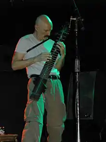 The Chapman Stick is an electric musical instrument devised by Emmett Chapman in the early 1970s. A member of the guitar family, the Chapman Stick usually has ten or twelve individually tuned strings and is used to play bass lines, melody lines, chords, or textures. Designed as a fully polyphonic chordal instrument, it can also cover several of these musical parts simultaneously.[1]