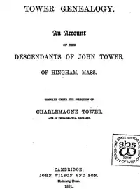 - Tower Genealogy: An Account of the Descendants of John Tower of Hingham, Massachusetts, Prepared Under the Direction of Charlemagne Tower, Late of Philadelphia, Deceased, John Wilson and Son, Cambridge, Mass., 1891