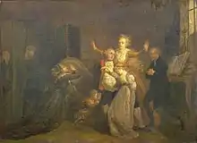 He also painted also "The last Interview between Charles I and his Children" engraved by Thomas Gaugain, as well as some subjects from the poets and several good portraits. He was a member of the Florentine Academy, and exhibited at the Royal Academy in London in the years 1790 and 1791. He likewise engraved a few plates in aquatint, including the "Couronnement de la Rosiere", in which he attempted to imitate the style of Philibert-Louis Debucourt, and also some portraits after himself, as well as two of Henry IV, king of France, and Sully, after Pourbus, which are signed with the fictitious name of Frieselheim.[1]