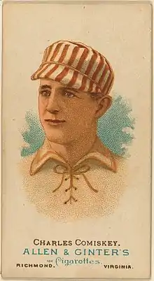 Charles Albert Comiskey (August 15, 1859 – October 26, 1931), also nicknamed "Commy" or "The Old Roman", was an American Major League Baseball player, manager and team owner. He was a key person in the formation of the American League, and was also founding owner of the Chicago White Sox.[1] Comiskey Park, the White Sox' storied baseball stadium, was built under his guidance and named for him.[1]