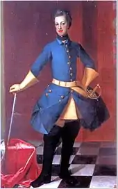 Charles Frederick, Duke of Schleswig-Holstein-Gottorp (German: Karl Friedrich, Herzog von Schleswig-Holstein-Gottorp) (30 April 1700 – 18 June 1739) was a Prince of Sweden and Duke of Schleswig-Holstein-Gottorp and an important member of European royalty. His dynasty, the Dukes of Schleswig-Holstein-Gottorp, were a cadet branch of the ancient House of Oldenburg, which at that time was ruling Denmark. His mother was a sister of Charles XII of Sweden. Charles Frederick married a daughter of Peter the Great and became the father of the future Peter III of Russia. As such, he is the progenitor of the Russian imperial house of Holstein-Gottorp-Romanov and the patrilineal ancestor of all Russian emperors starting with Peter III, except for Catherine II.