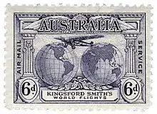 A stamp sheet and stamps, featuring the Australian aviators Kingsford Smith and Ulm, were released by Australia Post in 1978, commemorating the 50th anniversary of the flight.[32]