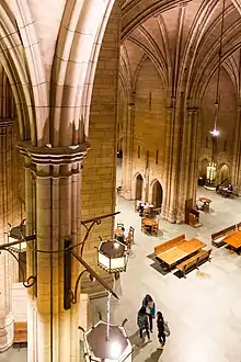 Klauder considered his greatest achievement to be the Commons Room of the Cathedral of Learning at the University of Pittsburgh. The Commons Room is a fifteenth-century English perpendicular Gothic-style hall that covers half an acre (2,000 m2) and extends upwards four stories, reaching 52 feet (16 m) tall.[3]