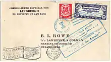 Lindbergh used his fame to promote air mail service. For example, at the request of the owner of West Indian Aerial Express (and later Pan Am's chief pilot), in February 1928 he carried some 3,000 pieces of special souvenir mail between Santo Domingo, R.D., Port-au-Prince, Haiti, and Havana, Cuba[95]—the last three stops he and the Spirit made during their 7,800 mi (12,600 km) "Good Will Tour" of Latin America and the Caribbean between December 13, 1927 and February 8, 1928.[96]