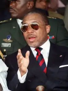Born in Arthington, Montserrado County, Liberia, Taylor earned a degree at Bentley College in the United States before returning to Liberia to work in the government of Samuel Doe. After being removed for embezzlement, he eventually arrived in Libya, where he was trained as a guerrilla fighter. He returned to Liberia in 1989 as the head of a Libyan-backed rebel group, the National Patriotic Front of Liberia, to overthrow the Doe government, initiating the First Liberian Civil War (1989–1996). Following Doe's execution, Taylor gained control of a large portion of the country and became one of the most prominent warlords in Africa.[3] Following a peace deal that ended the war, Taylor was elected president in the 1997 general election.[4]