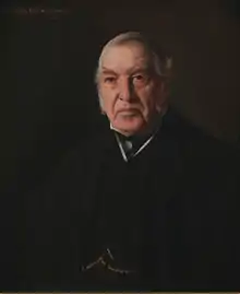 Tupper's unique position of being both Minister of Finance and High Commissioner to London served him well in an emerging crisis in American-Canadian relations: in 1885, the U.S. abrogated the fisheries clause of the Treaty of Washington (1871), and the Canadian government retaliated against American fishermen with a narrow reading of the Treaty of 1818.[5] Acting as High Commissioner, Tupper pressured the British government (then led by Lord Salisbury) to stand firm in defending Canada's rights.[5] The result was the appointment of a Joint Commission in 1887, with Tupper serving as one of the three British commissioners to negotiate with the Americans.[5] Salisbury selected Joseph Chamberlain as one of the British commissioners.[5] John Thompson served as the British delegation's legal counsel.[5] During the negotiations, U.S. Secretary of State Thomas F. Bayard complained that "Mr. Chamberlain has yielded the control of the negotiations over to Sir Charles Tupper, who subjects the questions to the demands of Canadian politics."[5] The result of the negotiations was a treaty (the Treaty of Washington of 1888) that made such concessions to Canada that it was ultimately rejected by the American Senate in February 1888.[5] However, although the treaty was rejected, the Commission had managed to temporarily resolve the dispute.