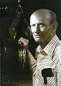 Charles Russell Dunn (c. 1898 – September 23, 1993)[1] was an American bootmaker of handmade Western, or cowboy, boots for more than 80 years. Dubbed the "Michelangelo of cowboy boots,"[2] he first gained widespread notice in the wake of Jerry Jeff Walker's song "Charlie Dunn" (1972). By the time he retired in 1988 from Texas Traditions, his shop in Austin, he routinely charged up to $3,000 for a pair of boots, had a waiting list of hundreds of interested buyers willing to wait three years for delivery, and had made boots for a long list of celebrities, including Arnold Palmer, Mary Kay Place, Gene Autry, Slim Pickens, Don F Brooks, Harry Belafonte, Ernest Tubb, Peter Fonda, and Carole King.[3]