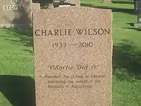 Wilson died at the age of 76 on February 10, 2010, at Memorial Health System of East Texas at Lufkin (now the CHI St. Luke's Health Memorial Lufkin) in Lufkin, Texas, after collapsing earlier in the day.[46] He suffered from cardiopulmonary arrest.[47][48][49] "America has lost an extraordinary patriot whose life showed that one brave and determined person can alter the course of history," said Robert Gates, then United States Secretary of Defense.[50][51]