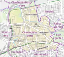 Location of Charlottenburg in Charlottenburg-Wilmersdorf and Berlin | |