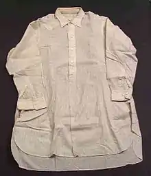 Charvet shirts were imported into the United States as early as 1853 (See figure right).[100] By 1860, Charvet's shirts turnover was equally divided between luxury bespoke shirts sold in the Paris store and ready made shirts for export, particularly to Russia, Great-Britain and Havana.[101] Also, following the custom of the time, designs and models were sold to American stores, to be locally reproduced.[102][103] In the 1920s, Charvet's name was associated in the United States with linen fabrics in "startingly floreated" patterns, used for shirt bibs and cuffs.[104] Nevertheless, into the middle of the 20th century, Charvet was selling only bespoke shirts in the Paris store.[n. 7]