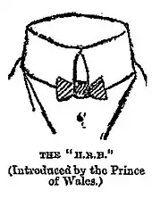 In 1855 Charvet exhibited shirts and drawers at the Paris World's fair.[32] The jury noted that Parisian shirt makers had an "unquestionable supremacy".[45][n. 4] Again, at the next Paris World's fair, Charvet exhibited shirts, drawers, vests and handkerchieves[48] and the Jury noted luxury shirts were a Parisian "monopoly".[49] When the king-to-be Edward VII visited the fair, he ordered Parisian shirts, as many other foreign visitors did,[50] and remained a loyal customer of Charvet, "honoring him during forty years with a special kindness"[51] (See List of Charvet customers). Charvet created[52] for the prince of Wales a certain style of shirt collar, the stand-up turn-down collar, also referred to as the H.R.H. collar, which became very popular at the end of the 19th century (Figure, right).[53]