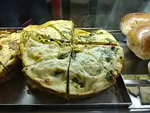 Chatti pathiri is a layered pastry made in the North Malabar and Malabar region, of Kerala, India. It is made in both sweet and savoury variations. The dish is similar to the Italian lasagna, but instead of pasta, pastry sheets / pancakes made with flour, egg, oil and water are used. The filling depends on the variation desired. The sweet ones are made with sweetened beaten eggs, nuts and raisins, seasoned with cardamom. The savoury ones are made with traditional meat filling used in making samosas or savoury puffs. The flour is kneaded into soft dough and rolled into thin pancakes. These pancakes are soaked in milk to soften them and arranged in layers. The fillings are added between these layers. Once layered, it goes in for baking at 180 degrees for approximately 20 minutes.