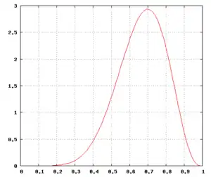 The graph on the right shows the probability density function of r given that 7 heads were obtained in 10 tosses. (Note: r is the probability of obtaining heads when tossing the same coin once.)