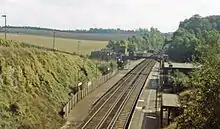 Chelsfield railway station is on the South Eastern Main Line, serving the Chelsfield and Green Street Green areas south of Orpington, in the London Borough of Bromley, south-east London. It is 15 miles 25 chains (24.6 km) down the line from London Charing Cross and is situated between Orpington and Knockholt stations. It is in Travelcard Zone 6.