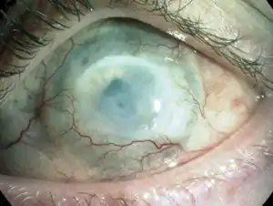 | An alkali burn to the human cornea can cause ocular surface failure with neovascularisation, opacification and blindness resulting from LESC deficiency. | |