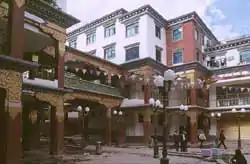 Chengguan was visited by Je Tsongkhapa in 1373 who suggested a monastery be built there. Galden Jampaling Monastery was constructed between 1436 and 1444 by a disciple of Tsongkhapa, Jansem Sherab Zangpo.[5] It is also known as the Changbalin or Qiangbalin Si Monastery. At its height it contained five main temples and housed some 2,500 monks.[6] It was destroyed in 1912 but the main hall (which was used as a prison) and two other buildings survived, and it was rebuilt in 1917 after the Tibetan army retook Chengguan. It now houses about 800 monks.[7][8]