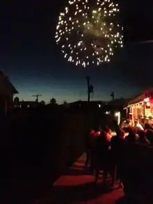 In the early morning hours of March 27, 2015, an epic fire of historic proportions "destroyed" the Grove Hotel, Holly House, and two residential homes nearby; 23 fire companies responded from Fire Island and the south shore of Long Island and three firefighters were injured.[13] The fire "engulfed" the surrounding properties, but the fire departments were able to put out the blaze, in this, "one of the most popular LGBTQ destinations."[14] According to its social media accounts, the Ice Palace, a famous nightclub, "had negligible damage", but was not destroyed along with the hotel.[15]