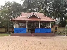 Cherthala Town Municipality has 35 wards.[4] The town is well known after the Karthyayani Devi temple, located in the center of the town. Two more sub-temples dedicated to Shiva and Vishnu are also located on the northern side of the main temple. A sub-temple dedicated to Lord Ayyappa, also known as Kaavudayan and another dedicated to Kshethrapalakan believed to be Devi's temple caretaker are located on the southern corner of the main temple. Thousands of devotees coming from different 'karas' (localities) of Cherthala participate in the Padayani, vela thullal and pooram pattu, the main rituals conducted during the temple festival. A large pond exists in front of the Taluk office that belongs to the Karthyayani Devi temple. One can see many roosters flocking around the temple premises. These roosters are the offerings of the devotees, an ancient custom followed in many devi temples of Kerala. The temple is administered by Travancore Devaswom Board.