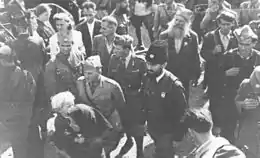 Fleeing the Partisans, in March 1945 Pavle Đurišić negotiated an agreement with the Ustaše and Ustaše-supported Montenegrin separatist, Sekula Drljević, to provide safe conduct for his Chetniks across the NDH.[164] The Ustaše agreed to this, but when the Chetniks failed to follow the agreed-upon withdrawal route, the Ustaše attacked the Chetniks at Lijevče Field, afterward killing the captured commanders, while the remaining Chetniks continued to withdraw to Austria with the NDH army and under their military command.[164]
