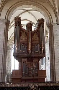 There has been organ music at Chichester Cathedral almost continuously since the medieval period, with a break during the Commonwealth. There are now five pipe organs of different sizes and styles at Chichester Cathedral, with pipes of the Main Organ dating to the Restoration, the Hurd Organ to the late 18th century and the three most recent organs, the Nave Organ, the Walker Organ, which is a small portable organ in the Baroque style, and the Allen Organ, an early example of a digital electronic organ, dating to the late 20th century.