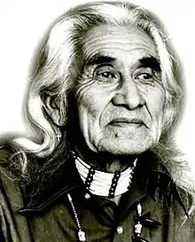 Chief Dan George, OC (July 24, 1899 – September 23, 1981) was a chief of the Tsleil-Waututh Nation, a Coast Salish band whose Indian reserve is located on Burrard Inlet in the southeast area of the District of North Vancouver, British Columbia, Canada. He was also an actor, musician, poet and author; his best-known written work was "My Heart Soars".[1] As an actor, he is best remembered for portraying Old Lodge Skins opposite Dustin Hoffman in Little Big Man (1970), for which he was nominated for the Academy Award for Best Supporting Actor; also for his role in The Outlaw Josey Wales (1976), as Lone Watie, opposite Clint Eastwood.