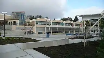 In 2008 the school was relocated to the former Boren Middle School during construction for a major upgrade and expansion. On September 8, 2010, Chief Sealth re-opened in the newly renovated facility. Denny International Middle School opened in the newly expanded facility in September, 2011.[14] The much larger building supports grades 6–12, including students from CSIHS and DIMS. The renovation included removal of portable classrooms, seismic upgrades, new mechanical, technology and fire protection systems, energy-efficiency upgrades, revamped auditorium, expanded music facilities, new finishes, and addition of new shared spaces.[15] Both schools remain distinct within the shared facility, although some spaces such as the renovated CSIHS auditorium and the new two-story Galleria are shared between the schools. The design of the renovation and expansion was undertaken by Bassetti Architects of Seattle.