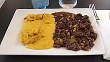 Beans, a staple of Tex-Mex cuisine, have been associated with chili as far back as the early 20th century.[14] The question of whether beans belong in chili has long been a matter of contention among chili cooks. While it is generally accepted that the earliest chilis did not include beans, proponents of their inclusion contend that chili with beans has a long enough history to be considered authentic.[15] The Chili Appreciation Society International specified in 1999 that, among other things, cooks are forbidden to include beans in the preparation of chili for official competition—nor are they allowed to marinate any meats.[16] Small red or pink common beans are commonly used for chili, as are black beans, black-eyed peas, kidney beans, pinto beans, great northern beans, or navy beans.