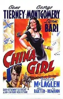 China Girl is a 1942 drama film which follows the exploits of a newsreel photographer in China and Burma against the backdrop of World War II. The film was directed by Henry Hathaway, and stars Gene Tierney, George Montgomery, Lynn Bari and Victor McLaglen.[2] It is also known as A Yank In China, Burma Road and Over The Burma Road.