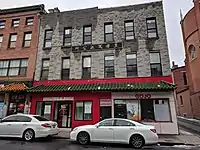 The U.S. city of Baltimore, Maryland (Chinese: 巴爾的摩; pinyin: bā ěr de mó) is home to a small Chinatown. Historically, Baltimore had at least two districts that were called "Chinatown" where the first one existed on the 200 block of Marion Street[1] during the 1880s. A second and current location is at the 300 block of Park Ave., which was dominated by laundries and restaurants. The initial Chinese population came because of the transcontinental railroad, however, the Chinese population never exceeded 400 as of 1941. During segregation, Chinese children were classified as "white" and went to the white schools. Chinatown was largely gone by the First World War due to urban renewal. Although Chinatown was largely spared from the riots of the 1960s, most of the Chinese residents moved to the suburbs.[2] As of 2009, the area still shows signs of blight and does not have a Chinese arch.[3] As of 2017, the area has become an “immigration hub” for Ethiopian people.[4] In 2018, a mural of a Chinese dragon and an African lion was painted to signify the past as a Chinatown and the present as an African neighborhood. A night market in September 2018 marked the first Asian celebration of the area to an area that was “long forgotten and neglected”.[5]