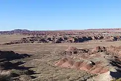 Although many specimens have been referred to Chindesaurus, only one specimen has enough material to remain within the genus with certainty.[1] This specimen, holotype PEFO 10395, is a partial skeleton, found within Petrified Forest National Park in Apache County, Arizona. PEFO 10395 was discovered in 1984 by Bryan Small, who recovered the skeleton from a blue mudstone layer in the Chinle Formation's Upper Petrified Forest Member.[3][6][1] Based on U-Pb dating of overlying and underlying units, the mudstone layer was deposited about 213 to 210 million years ago, during the Norian stage of the Triassic.[1]