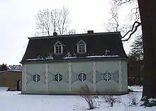 The Chinese House (German: Chinesisches Haus) is a garden pavilion in Sanssouci Park in Potsdam, Germany. Frederick the Great had it built, about seven hundred metres southwest of the Sanssouci Summer Palace, to adorn his flower and vegetable garden. The garden architect was Johann Gottfried Büring, who between 1755 and 1764 designed the pavilion in the then-popular style of Chinoiserie, a mixture of ornamental rococo elements and parts of Chinese architecture.