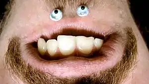 They Might Be Giants' first video, for their song "Put Your Hand Inside the Puppet Head," features one of them doing the chinface, with a xeroxed picture of his eyes placed on his chin.