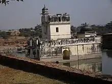According to legend, Rani Padmini's Palace is from which the Delhi Sultanate ruler Alauddin Khalji was allowed to watch a reflection of the Rani by replacing the mirror at such an angle that even if he turned back he could not see the room. Khalji had been warned by the Rani's husband Rawal Ratan Singh that if he turned back they would cut his neck.[20]
