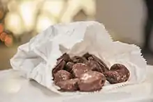 A chocolate-covered prune or plum is a typical Polish delicacy.[1][2] Along with similarly prepared dried apricots, chocolate-covered prunes are a traditional confectionery in Russia and Ukraine.[3]