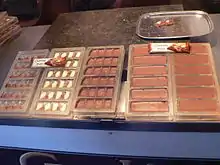 Some of the oldest preserved chocolate bars are two pieces of white and dark chocolate made between 1764 and 1795 for the king of Poland, Stanislaus Augustus Poniatowski, as a gift for his courtiers.[23] Each bar, possibly made by the royal confectioner in Warsaw, bears the King's monogram, SAR, and is on display in his summer residence, Palace on the Water, in Warsaw.[23]