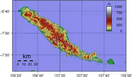 Choiseul Island, native name Lauru,[1] is the largest island (2,971 km2 (1,147 sq mi)) of the Choiseul Province, Solomon Islands, at 7.08°S 157°E. The administrative headquarters of Choiseul Province is situated in the town of Taro.