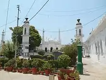 This mosque is built on a high platform with two grand minarets on the edge of the platform. This mosque is very beautifully decorated with floral designs and Quranic calligraphy.