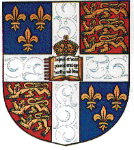 There are also arms in use by the cathedral, which were confirmed in a visitation of 1574. They are emblazoned: "Between quarterly, 1st & 4th, France modern (azure three fleurs-de-lys or), 2nd & 3rd, England (gules in pale three lions passant guardant or), on a cross argent an open Bible proper edged and bound with seven clasps or, inscribed with the words In principio erat Verbum, et Verbum erat apud Deum and imperially crowned or."