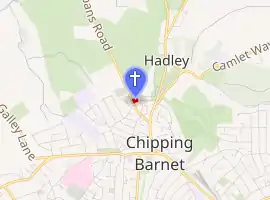 The church's cemetery is on the opposite (western) side of St Albans Road, a short distance to the north, and contains a number of war graves.[8] A memorial to former pupils of Barnet Boys School who died in the Second Boer War stands near the church.[9] There is also a wall monument to deaths in the First World War, inside the church.