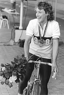 In 1980, she was convinced by her coach, Ernst Luding (whom she would marry after the 1988 Winter Olympics), to take up cycling during the off-season. First she was told to stick to skating, but finally the president of the East German sports federation gave her permission to enter international cycling competitions. At the 1986 World Cycling Championships, she won track cycling gold in the women's sprint and silver the following year. This made her the second woman (after Sheila Young) to become world champion in both speed skating and cycling. In October 1986, she was awarded a Star of People's Friendship in gold (second class) for her sporting success.[3]
