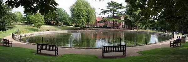 W.C. Fonnereau in 1848 laid out and developed Fonnereau Road as a superior residential area. In 1894 the mansion was bought by Felix Cobbold from a syndicate of property developments, to save the building from demolition. Cobbold, a wealthy local businessman and philanthropist, then offered to give it to the Ipswich Corporation to establish a Museum and Art Gallery, together with a further £20,000 (equivalent to £2,290,000 in 2019)[6] in Ipswich Stock for the purchase of artworks.[7] His offer was on condition that the Corporation buy the surrounding parkland for the people of Ipswich. It took Cobbold three attempts to get the Corporation to agree to this, but in February 1895 the mansion was transferred to the town and in April 1895 the Corporation purchased the central part of the park. The Corporation acquired the Upper Arboretum (laid out for public use in 1848) in 1928.[8] Felix Cobbold, among other members of the wealthy Cobbold family, have donated a great deal of land to the people of Ipswich, including the former Ipswich Racecourse.