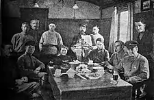 Rakovsky subsequently rejoined his wife in Saint Petersburg, where he hoped to settle down and engage in revolutionary activities (he was probably expelled after an initial attempt to enter the country, but was allowed to return).[16] An adversary of Peter Berngardovich Struve after the latter moved towards market liberalism,[6] he became acquainted with, among others, Nikolay Mikhaylovsky and Mikhail Tugan-Baranovsky, while authoring articles for Nashe Slovo and helping distribute Iskra.[5] His close relationship with Plekhanov led Rakovsky to a position between the Menshevik and Bolshevik factions of the Russian Social Democratic Labor Party, one he kept from 1903 to 1917; the Bolshevik leader Vladimir Lenin was initially hostile to Rakovsky,[14] and at one point wrote to Karl Radek that "we [the Bolsheviks] do not have the same road as his kind of people".[17]