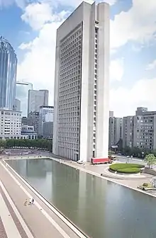 ![]() The First Church of Christ, Scientist, Christian Science Center, Boston, Massachusetts. The original Mother Church (1894) is in the foreground and behind it the Mother Church Extension (1906).[1] | |