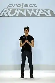 Before auditioning for Project Runway, Siriano worked as a freelance make-up artist and made wedding gowns for private clients[9] while also holding a brief intern position at Marc Jacobs.[6] Siriano decided to audition for the show after the suggestion of a friend's mother.[9] During his time on Project Runway, Siriano won three challenges, the most of any contestant that season.[15] Siriano advanced to the show's finals, and won a spot to show a twelve-piece final collection at New York Fashion Week. His collection was made up of Musketeer-inspired couture, featuring ruffles, feathers and headwear.[16] During the finale, which aired on March 5, 2008, celebrity guest judge Victoria Beckham praised Siriano's collection as being a "breath of fresh air" and stated that she would be "honored to wear" any piece of his clothing.[16][17] Siriano was announced the winner of the show's fourth season, winning a fashion spread in Elle magazine, a 2008 Saturn Astra, and US$100,000 to start his own label.[18]